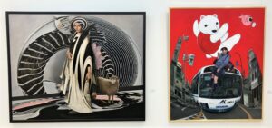 日本画の展示。色紙や迫力ある大きな絵も展示しています。日本画の美しさ、繊細さが伝わってくる魅力あふれる展示となっています。