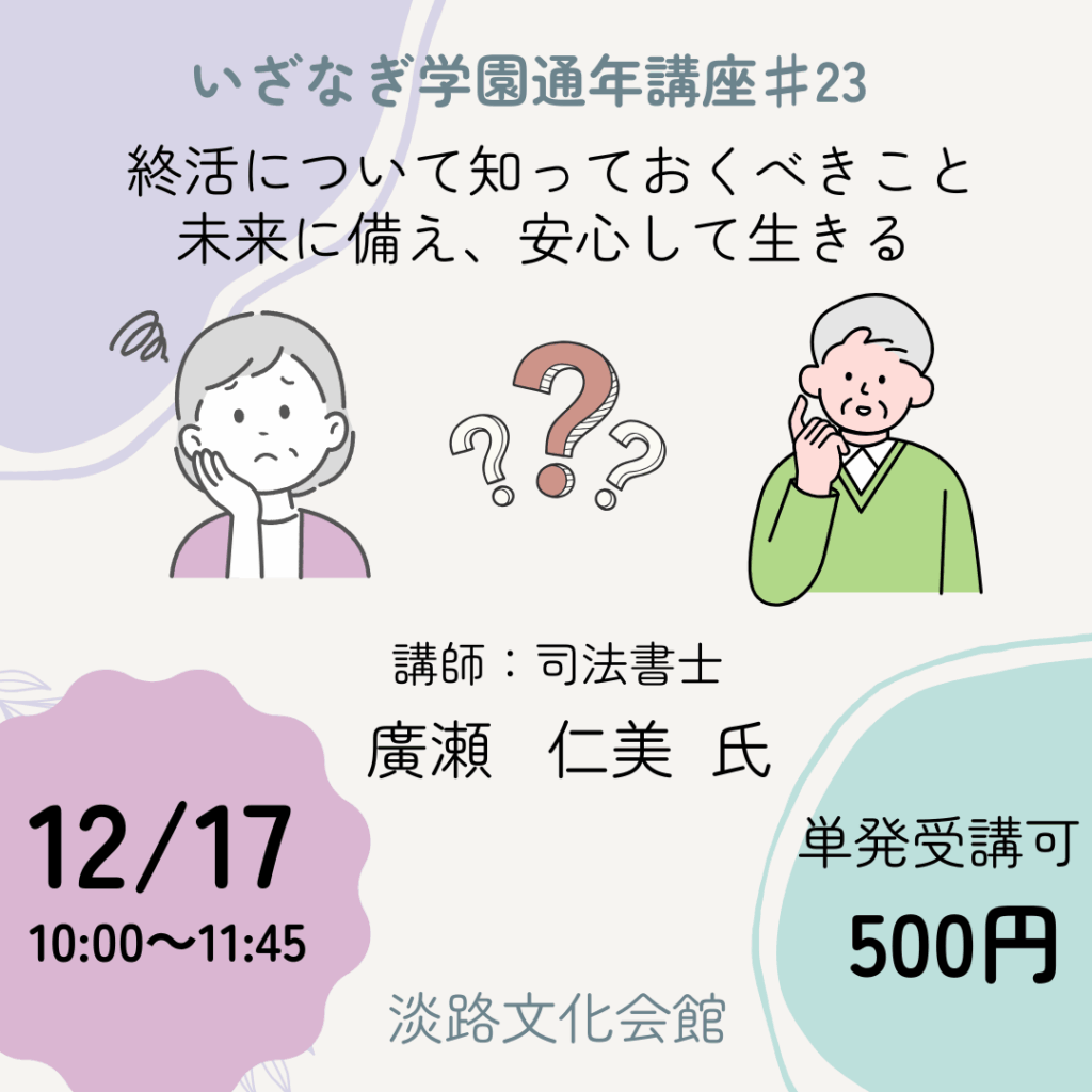 【淡路文化会館】通年講座第23回のご案内